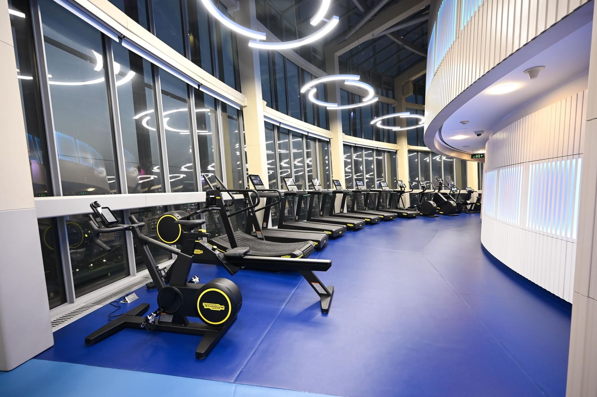 Located on the 50th and 51st floors of The Torch Doha, The Torch Club is a members-only premium fitness sanctuary blending cutting-edge technology with Qatari hospitality. Guinness record as the “world’s highest gym in a building,” it offers panoramic city views, top-tier Technogym equipment, and culturally attuned wellness services, including body composition analysis and a therapeutic salt room.